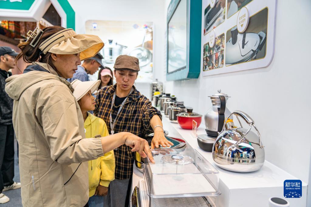 6月17日,工作人員在第五屆藏博會(huì )現場(chǎng)為參觀(guān)者介紹產(chǎn)品。