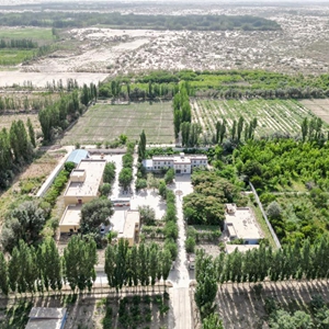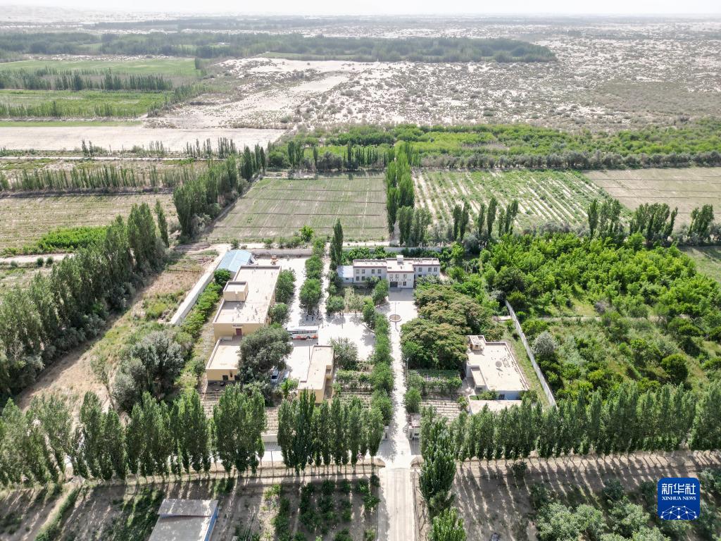 6月12日拍攝的位于新疆策勒縣的中科院新疆生態(tài)與地理研究所策勒沙漠研究站(無(wú)人機照片)。