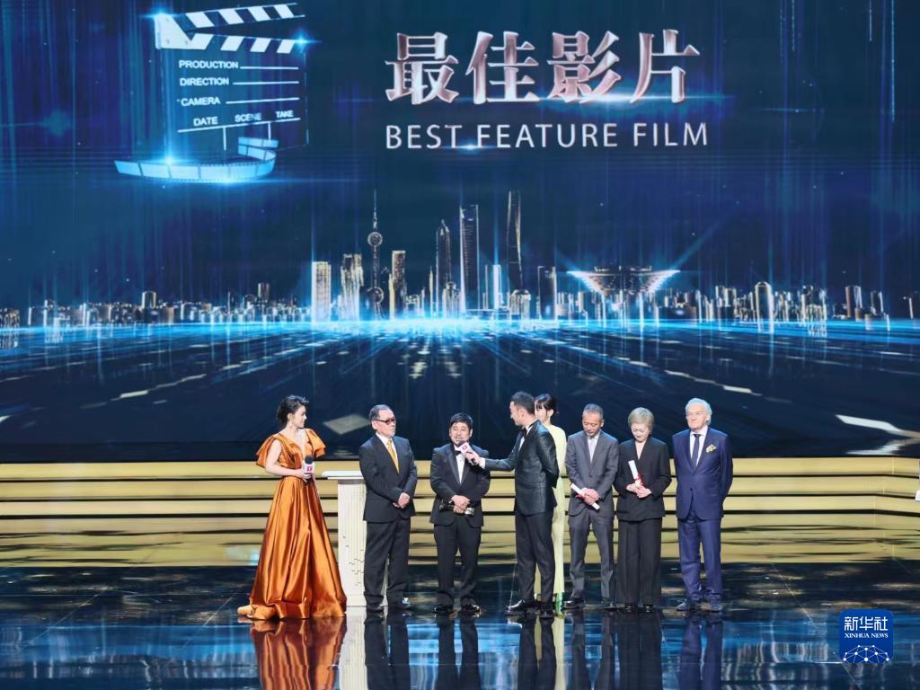 6月17日,獲得金爵獎最佳影片的《658公里、陽(yáng)子的旅途》劇組上臺領(lǐng)獎。