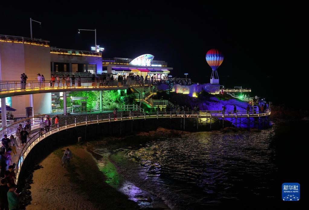 6月17日,游客在秦皇島市北戴河區碧螺塔酒吧公園游玩。