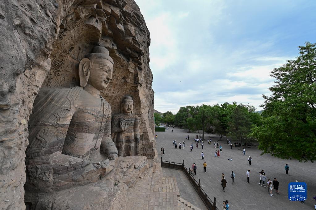 游客在云岡石窟參觀(guān)(2023年6月7日攝)。