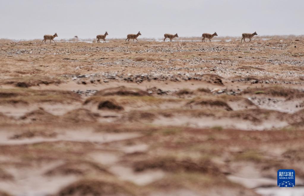 6月17日在可可西里卓乃湖區域拍攝的一群藏羚羊。