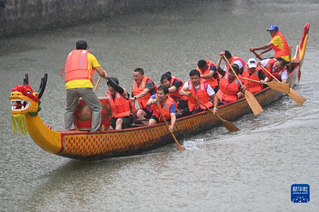 6月18日,農民代表隊冒雨參加龍舟比賽。