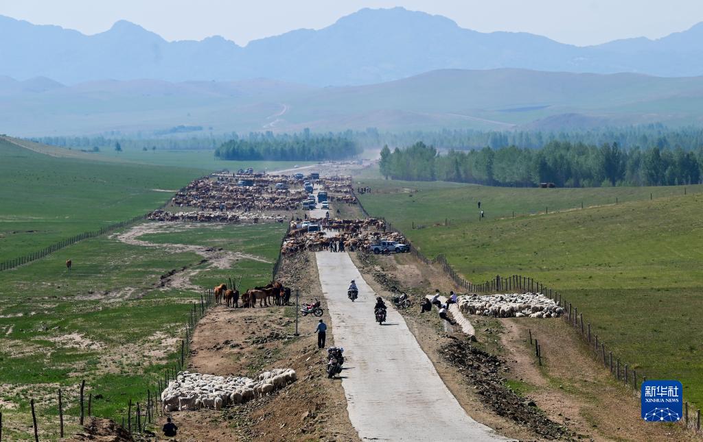 6月15日,內蒙古赤峰市阿魯科爾沁旗2000余戶(hù)牧民趕著(zhù)14.6萬(wàn)頭牲畜從定居點(diǎn)出發(fā),前往水草豐美的夏營(yíng)地進(jìn)行轉場(chǎng)。這是當地牧民一直延續下來(lái)的沿河遷徙、逐水草而居的游牧傳統。