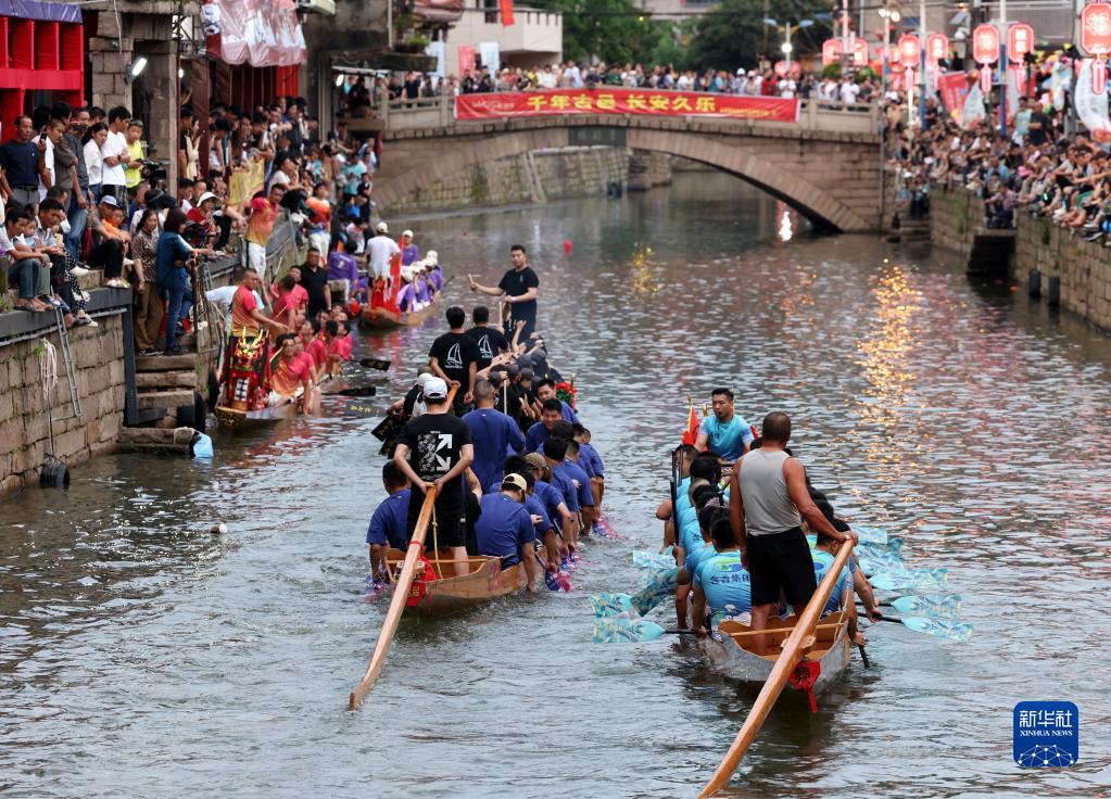 6月17日晚,在福建省福州市長(cháng)樂(lè )區三溪村,數十艘龍舟在小溪中競渡,南溪兩岸及石橋上人潮如涌,熱鬧非凡。夜賽龍舟是福建福州長(cháng)樂(lè )區三溪村獨有的端午習俗,已經(jīng)沿襲600多年。每年端午節前后,當地村民舉行夜賽龍舟活動(dòng),借此祈盼風(fēng)調雨順、平安健康。
