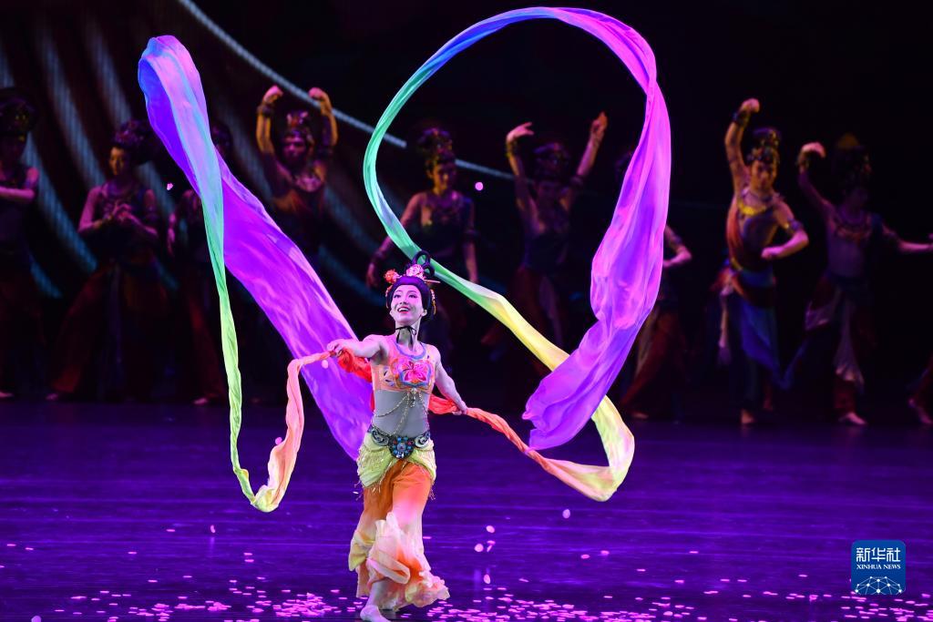 中國殘疾人藝術(shù)團演員在敦煌大劇院表演大型情景音畫(huà)劇《千手千眼》(6月18日攝)。