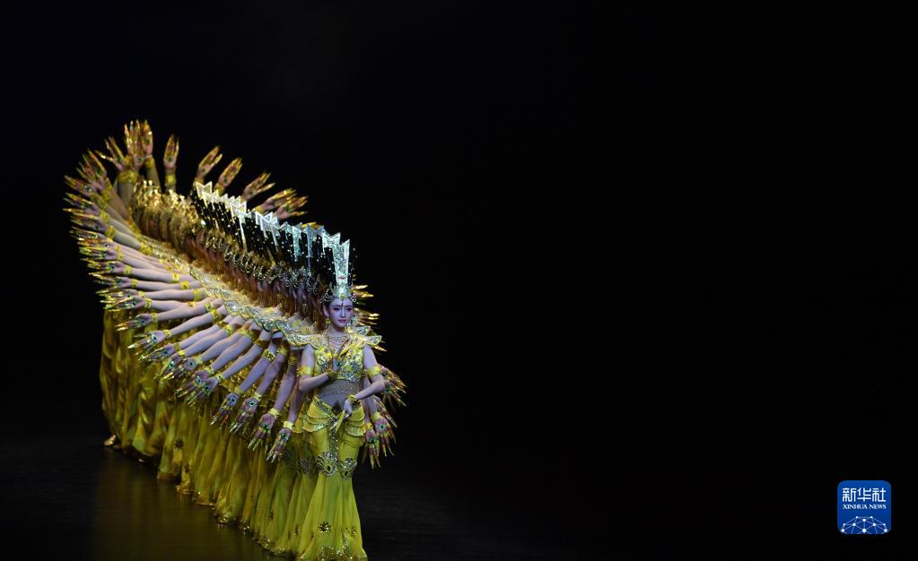 中國殘疾人藝術(shù)團演員在敦煌大劇院表演大型情景音畫(huà)劇《千手千眼》(6月18日攝)。