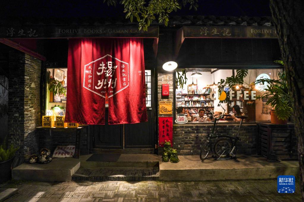 夜晚里揚州皮市街的書(shū)店燈火明亮(6月14日攝)。