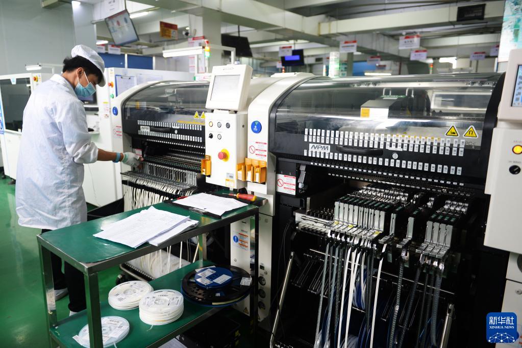 6月19日,漳州科華電氣技術(shù)有限公司工作人員在智能化車(chē)間生產(chǎn)電路板設備。