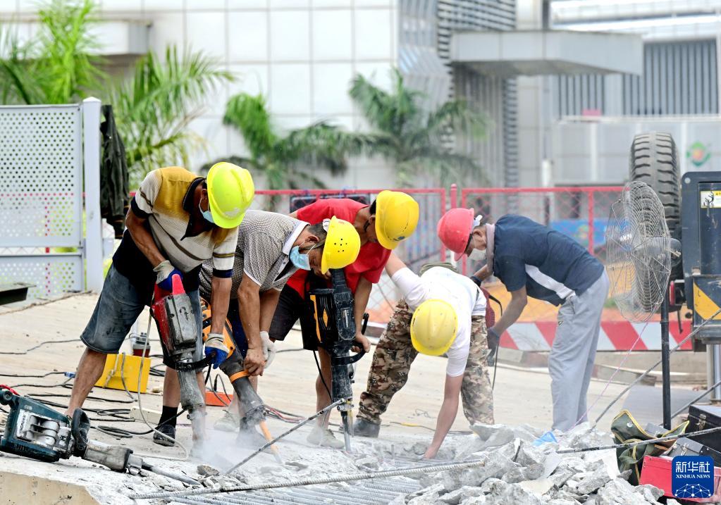 6月19日,工人在福廈高鐵新建廈門(mén)北站出發(fā)樓層施工。