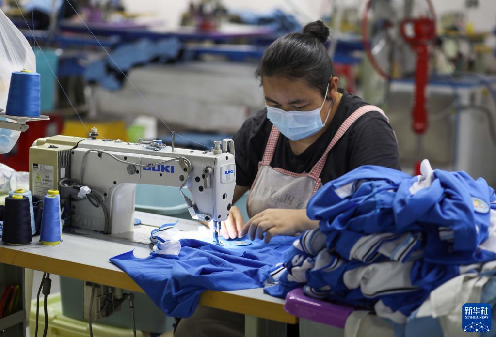 6月19日,村民在貴州省劍河縣幸福社區幫扶車(chē)間加工校服。