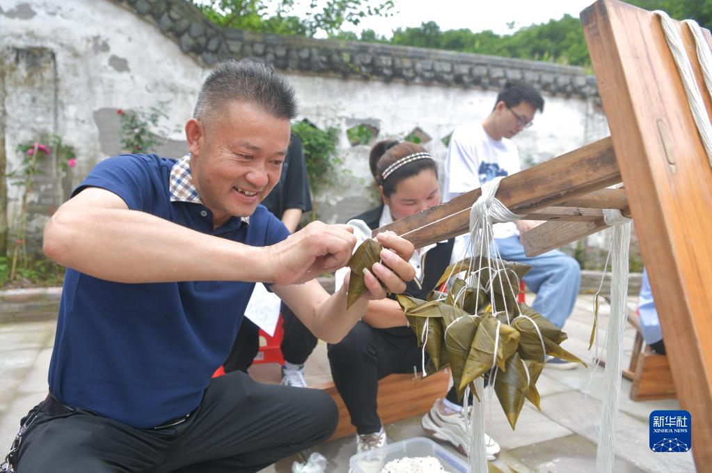 6月19日,村民參加四川省廣安市廣安區龍安鄉舉行的包粽子比賽。