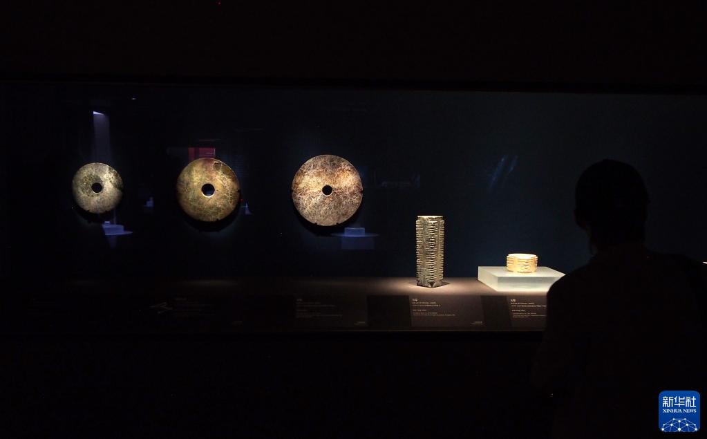 6月19日在特展上拍攝的上海青浦和金山地區出土的玉璧和玉琮。