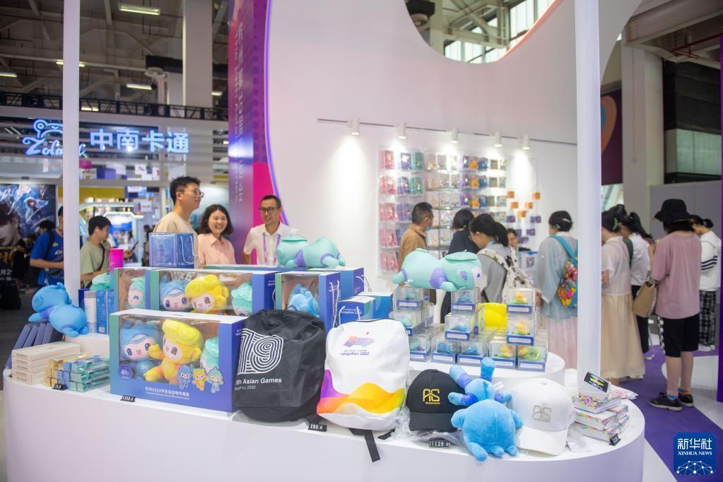 6月20日,觀(guān)眾在第十九屆中國國際動(dòng)漫節產(chǎn)業(yè)博覽會(huì )上參觀(guān)杭州亞運會(huì )展臺。