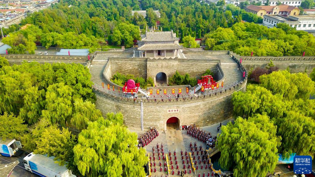 這是2020年9月26日在山東曲阜拍攝的孔廟萬(wàn)仞宮墻(無(wú)人機照片)。