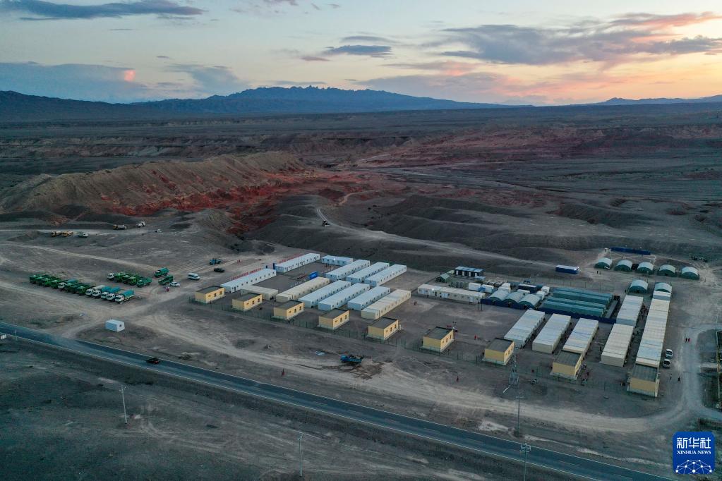 這是在新疆西天山拍攝的東方物探公司塔里木物探處2170隊本次項目的營(yíng)地(6月17日攝,無(wú)人機照片)。新華社記者 胡虎虎 攝