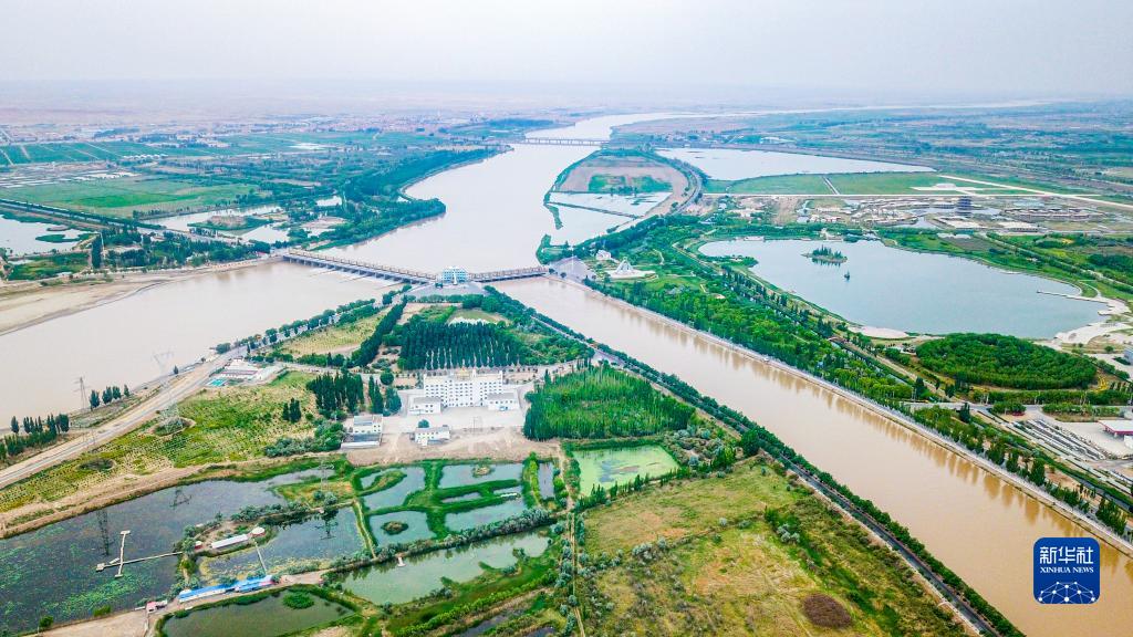 這是6月18日拍攝的巴彥淖爾市磴口縣三盛公水利樞紐(無(wú)人機照片)。
