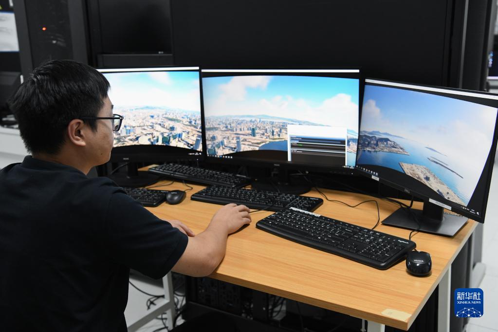 在廣東珠海南航翔翼,騰訊公司工作人員調試“全動(dòng)飛行模擬機視景系統”(6月13日攝)。