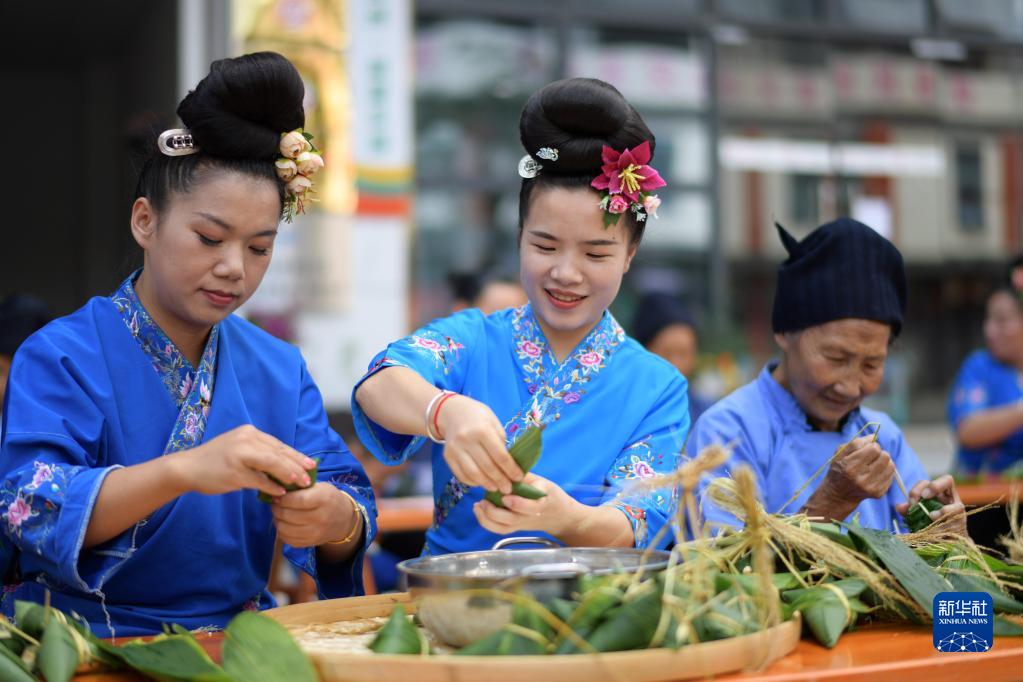 6月20日,居民在貴州省黔東南苗族侗族自治州臺江縣萃文街道方黎灣社區包粽子。
