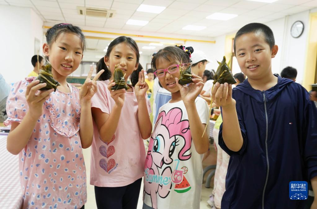 6月20日,在位于北京的人大附中實(shí)驗小學(xué),學(xué)生在廚藝課上包粽子。