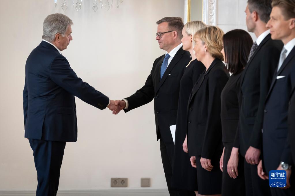 6月20日,在芬蘭赫爾辛基的總統府,總統尼尼斯托(左一)會(huì )見(jiàn)奧爾波領(lǐng)導的新政府成員。