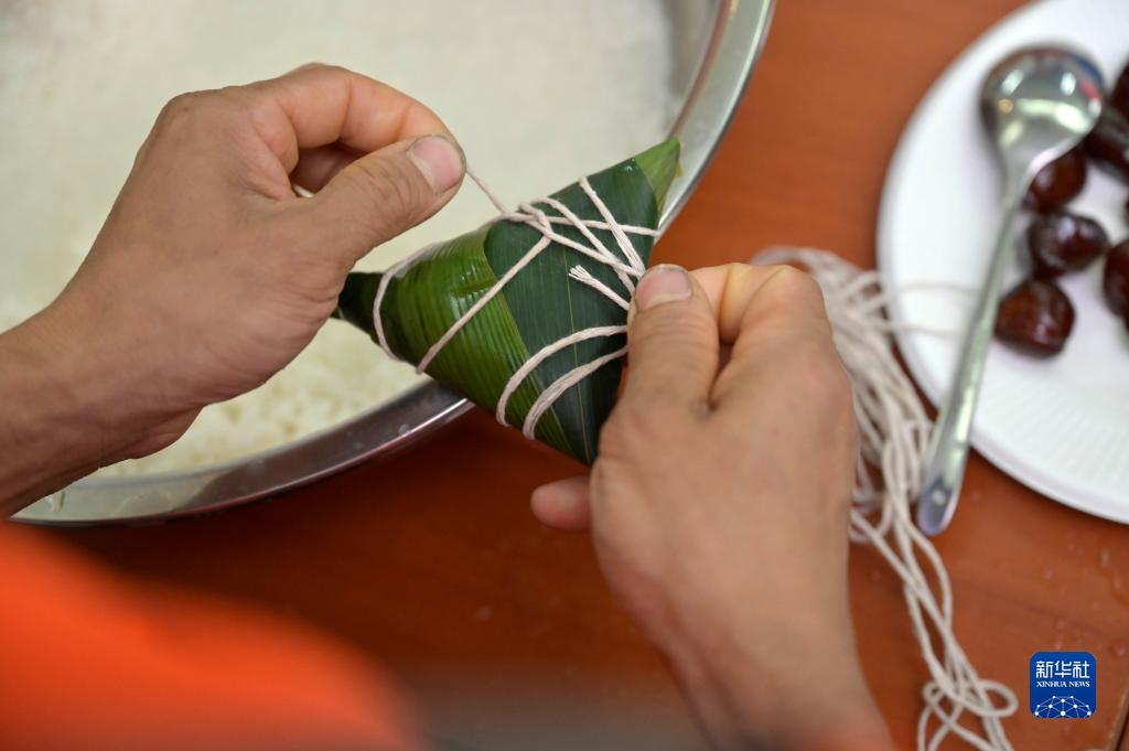 6月21日,在北京市昌平區中建二局安裝公司保利未來(lái)科技城項目舉行的“粽葉飄香·情暖一線(xiàn)”活動(dòng)上,一線(xiàn)建設者在包粽子。