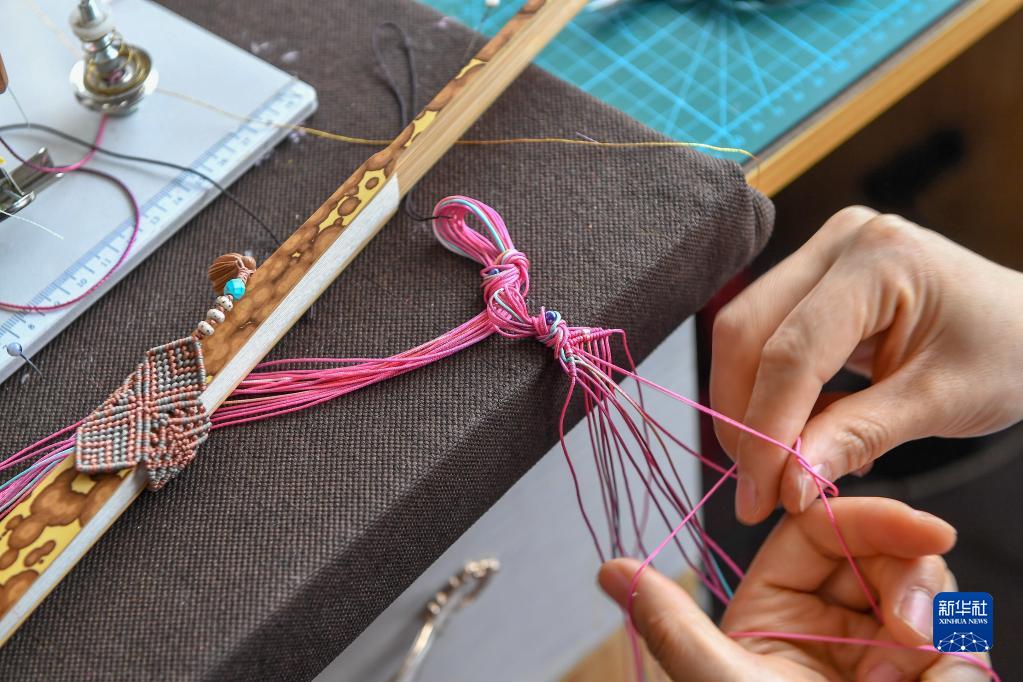 6月20日,在吉林省長(cháng)春市,徐曉雪編繩結工藝品。