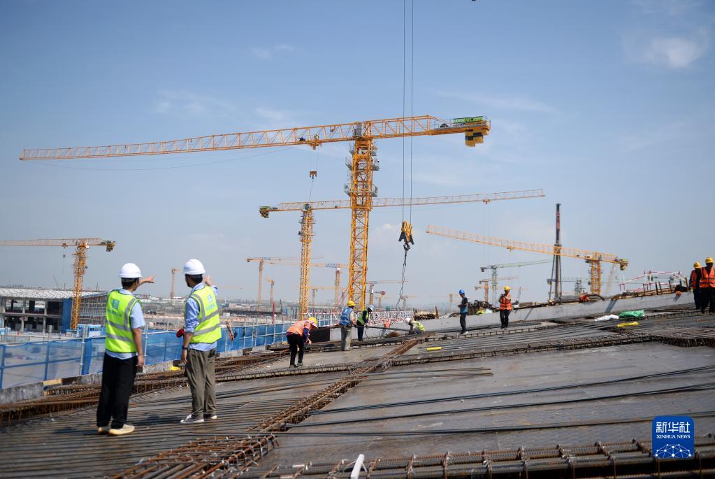 6月21日,中建三局工人在廈門(mén)翔安機場(chǎng)指廊工程項目建設工地施工。該項目已進(jìn)入封頂沖刺階段。