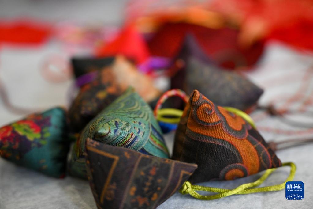 55歲的陳玉秋是國家級非物質(zhì)文化遺產(chǎn)滿(mǎn)族旗袍制作技藝代表性傳承人。端午節前,為了讓更多人了解端午節傳統習俗和滿(mǎn)族旗袍技藝,陳玉秋來(lái)到吉林省吉林市博物館,教人們縫制香囊,并將手工制作的香囊贈送給市民。