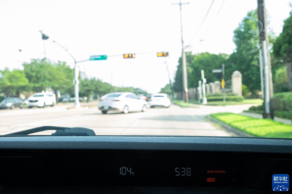 6月21日,在美國得克薩斯州休斯敦市,車(chē)內溫度計顯示氣溫達到104華氏度(攝氏40度)。