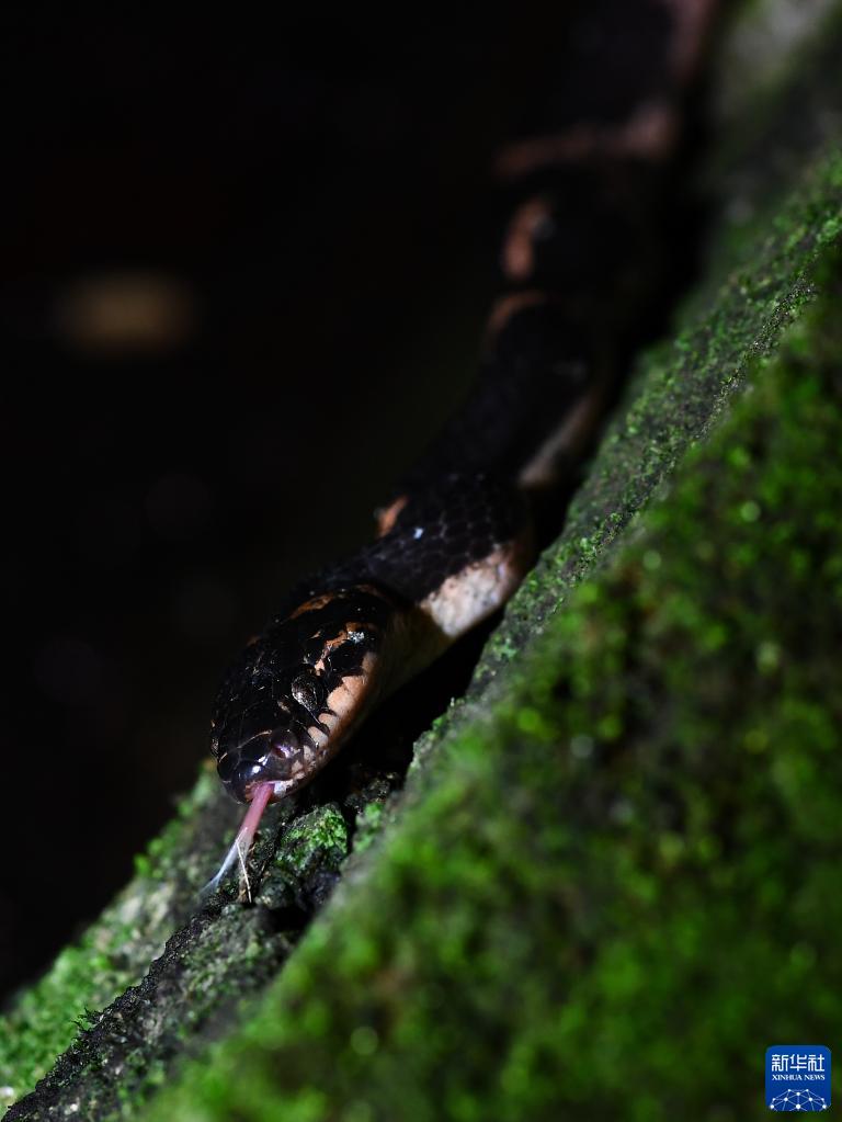 這是在海南熱帶雨林國家公園吊羅山片區拍攝的粉鏈蛇(6月14日攝)。