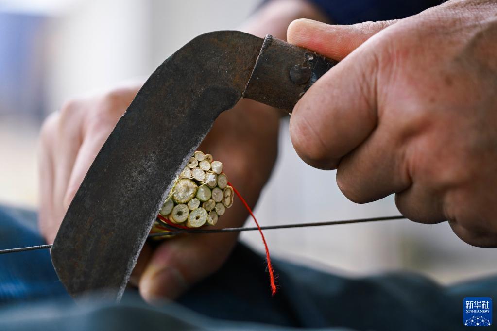 榮鳳明在家中制作工藝笤帚(6月21日攝)。