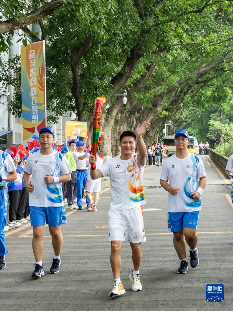 當日,成都第31屆世界大學(xué)生夏季運動(dòng)會(huì )火炬傳遞重慶站在重慶大學(xué)舉行。