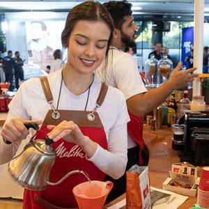 6月23日,工作人員在巴西圣保羅舉行的咖啡節上向參觀(guān)者介紹產(chǎn)品。