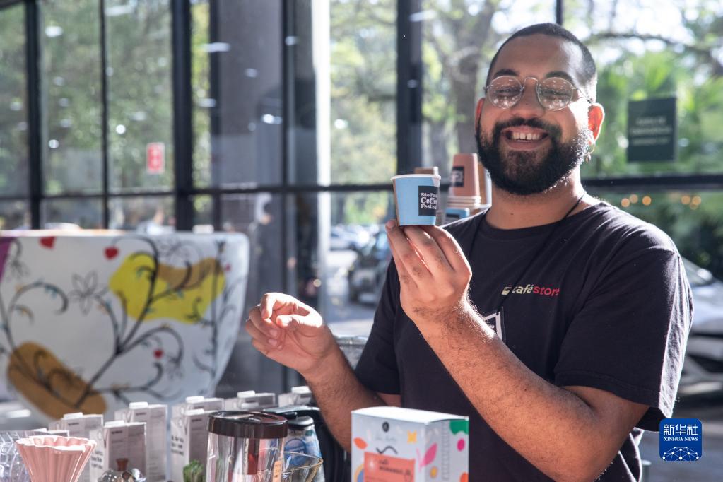 6月23日,在巴西圣保羅舉行的咖啡節上,工作人員展示制作好的咖啡。