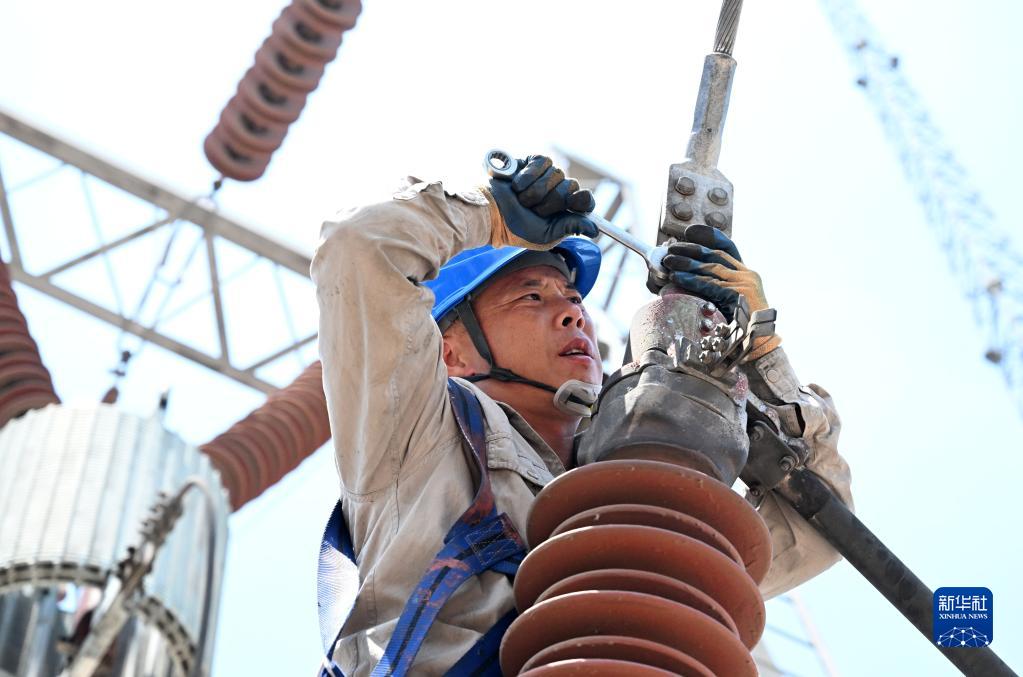 端午假期,天津迎來(lái)連續高溫天氣,社會(huì )用電負荷不斷攀升。國網(wǎng)天津市電力公司工作人員頂著(zhù)高溫,對重要供電線(xiàn)路、變電站進(jìn)行巡視,及時(shí)開(kāi)展檢修及改造作業(yè),確保電網(wǎng)安全運行和電力可靠供應。