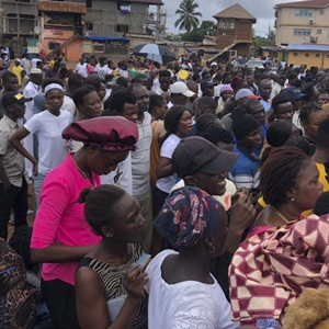 6月24日,在塞拉利昂首都弗里敦一處投票站,選民們排隊等待投票。