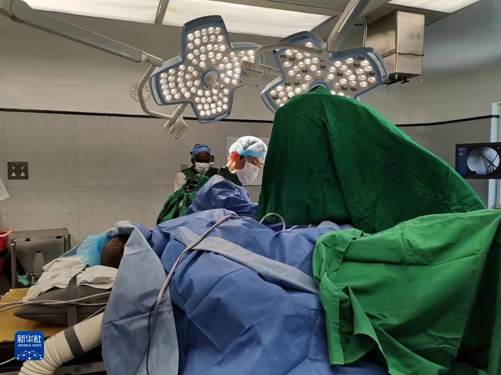 2019年7月31日,在巴巴多斯首都布里奇敦,第3批中國援巴巴多斯醫療隊成員、重慶市急救醫療中心創(chuàng )傷科主任醫師何平在伊麗莎白女王醫院為患者實(shí)施手術(shù)。