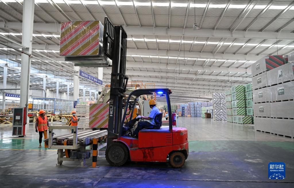 6月25日,工人在隆化縣泰山石膏承德有限公司生產(chǎn)車(chē)間忙碌。