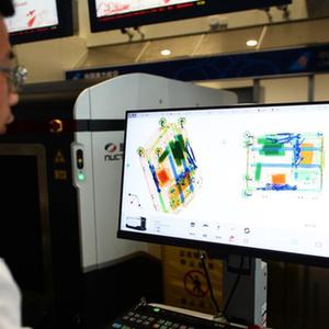 6月25日,在美蘭國際機場(chǎng)國內航班安檢海關(guān)聯(lián)合查驗通道,工作人員在測試設備。