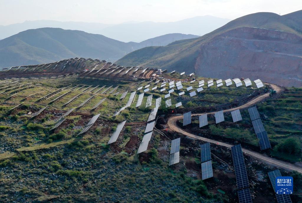 6月25日在云南省會(huì )澤縣娜姑鎮云峰村拍攝的光伏項目(無(wú)人機照片)。該項目流轉土地5000余畝,預計7月底并網(wǎng)發(fā)電。