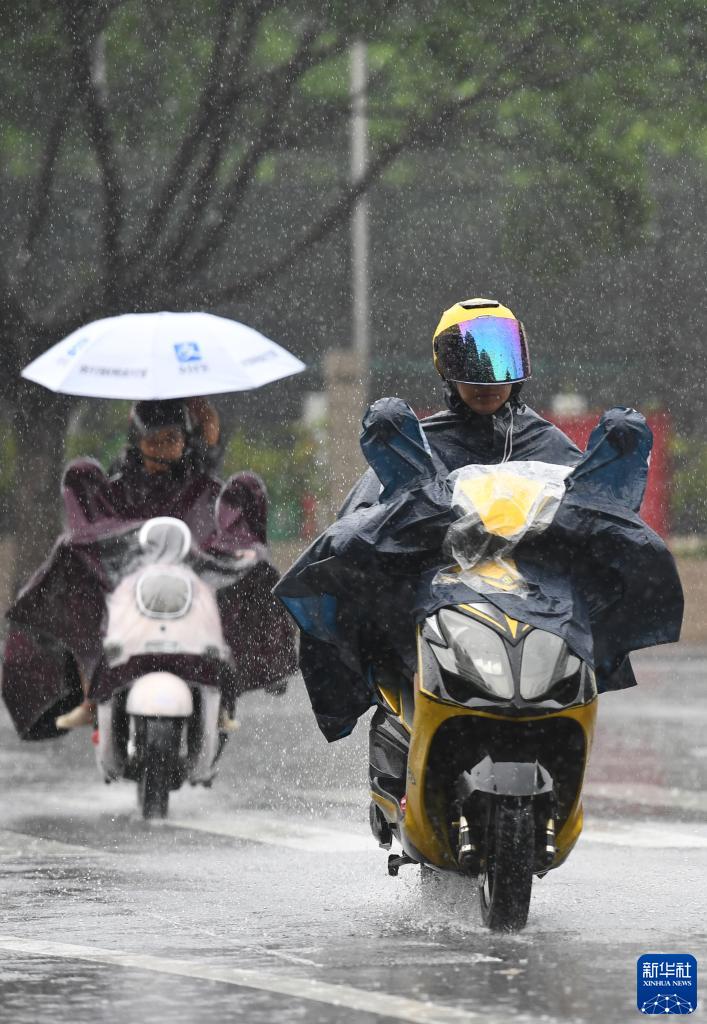 6月26日,在廣西南寧市濱湖路,市民冒雨出行。