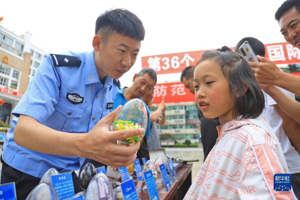 6月26日,在四川省阿壩藏族羌族自治州茂縣,民警為小學(xué)生講解毒品危害。