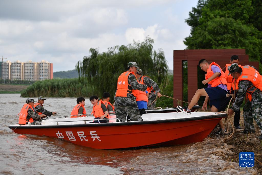 6月26日,防汛搶險應急演練人員駕駛沖鋒舟轉移“被困群眾”。