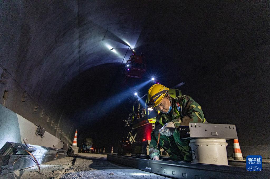 6月27日,在巫鎮高速公路二標段施工現場(chǎng),施工人員在進(jìn)行隧道橋架施工。
