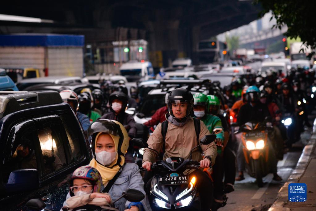 6月27日傍晚,在印度尼西亞雅加達東區的芝皮南切姆佩達克,人們在雅加達-萬(wàn)隆出城方向的道路上騎行。