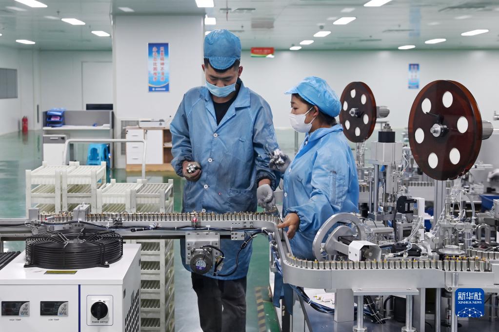 6月27日,在位于金昌經(jīng)濟技術(shù)開(kāi)發(fā)區的甘肅金宏翔新能源有限公司,工人在18650電池生產(chǎn)線(xiàn)上作業(yè)。