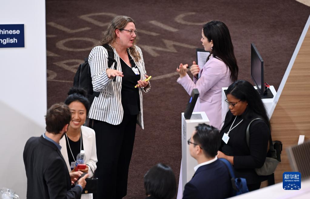 6月28日,與會(huì )者在論壇設置的新領(lǐng)軍者村內交流。