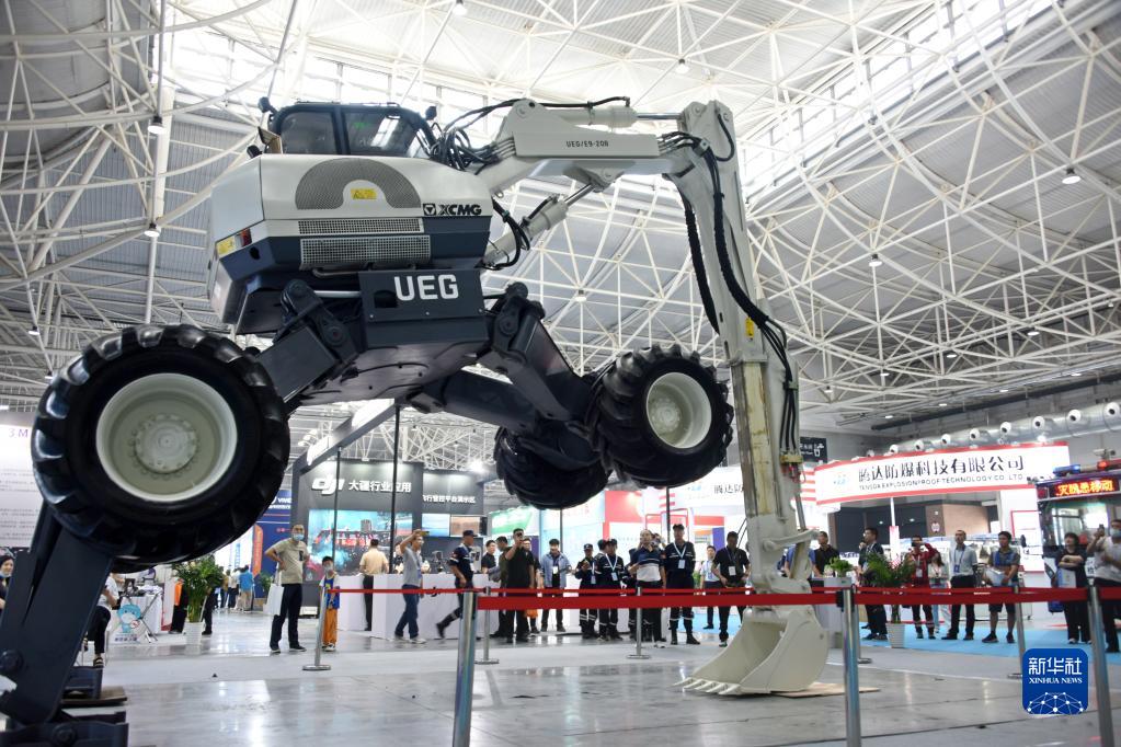 6月28日,參會(huì )者在展會(huì )上觀(guān)看挖掘機特技演示。