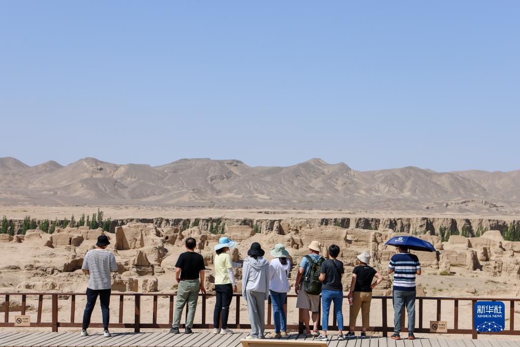 游客在位于吐魯番市的交河故城景區參觀(guān)(6月25日攝)。